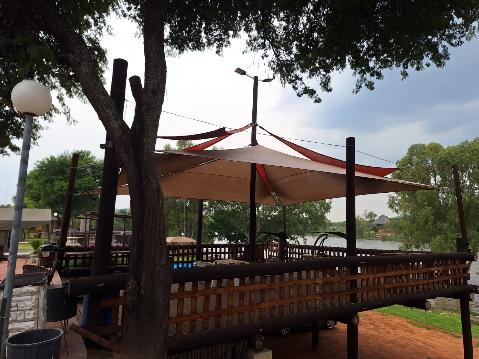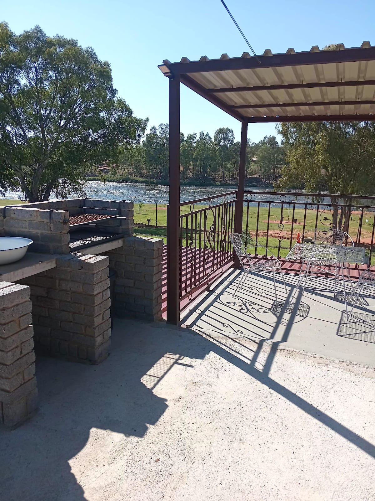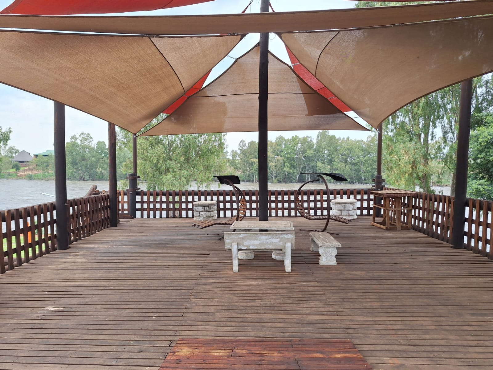Enjoy a sundowner on the large wooden deck overlooking the pool and river and become part of nature’s beauty .