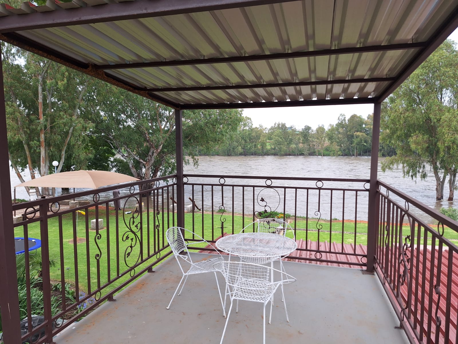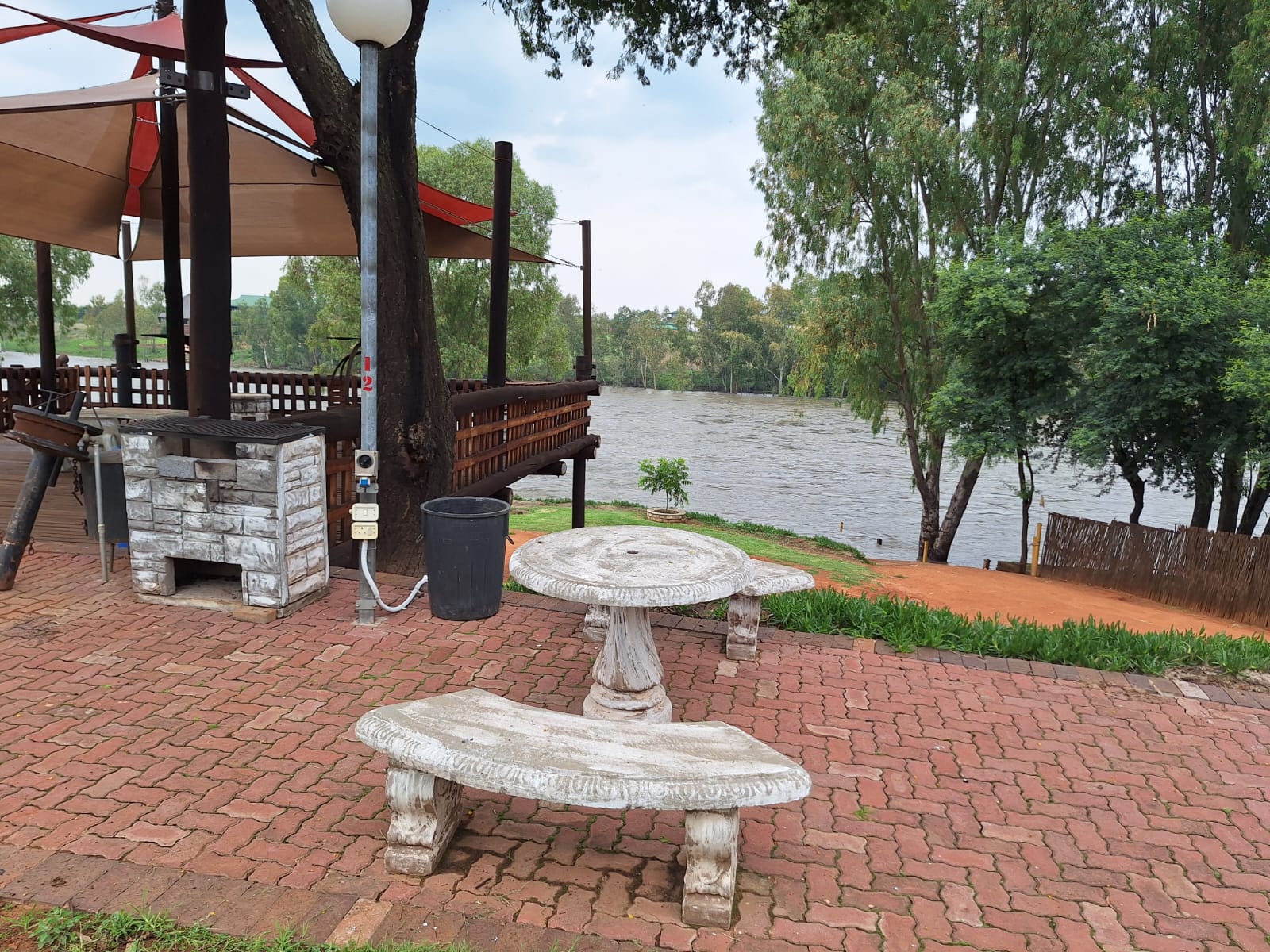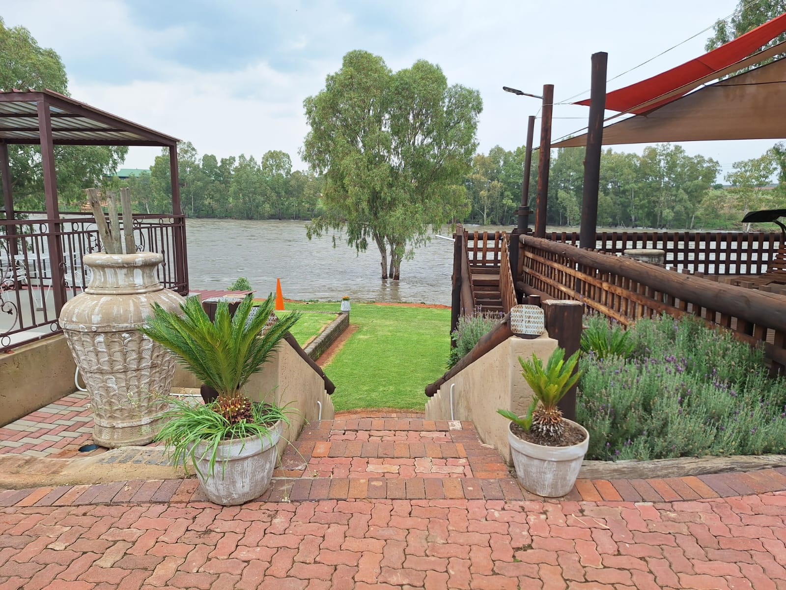 Enjoy a sundowner on the large wooden deck overlooking the pool and river and become part of nature’s beauty .