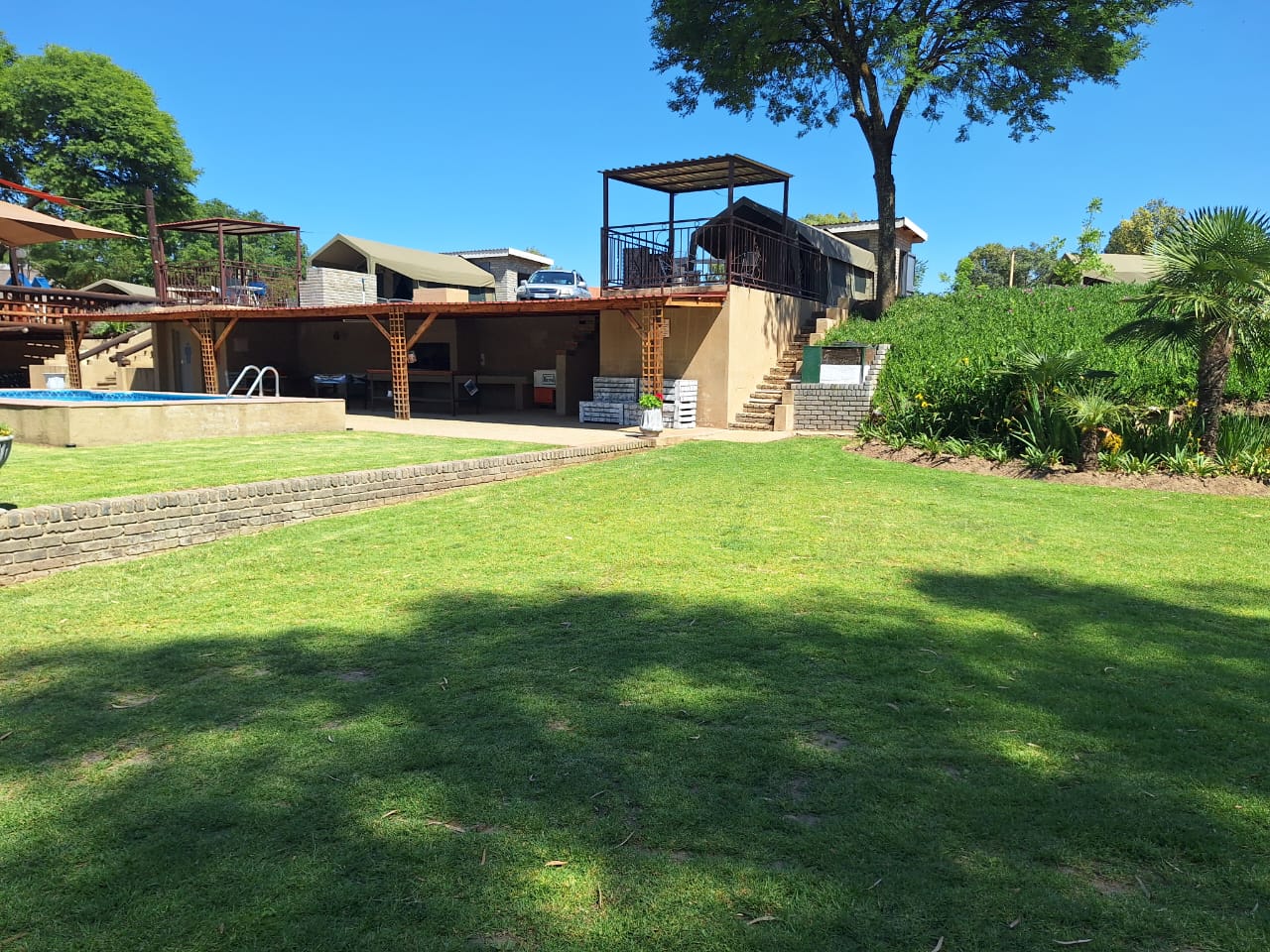 Enjoy peace and tranquility from the cry of Fish Eagle and other birdlife roaming the area while relaxing in the pool with lush green lawns overlooking the river and serviced camping sites that will make you realize this is the right place to be.