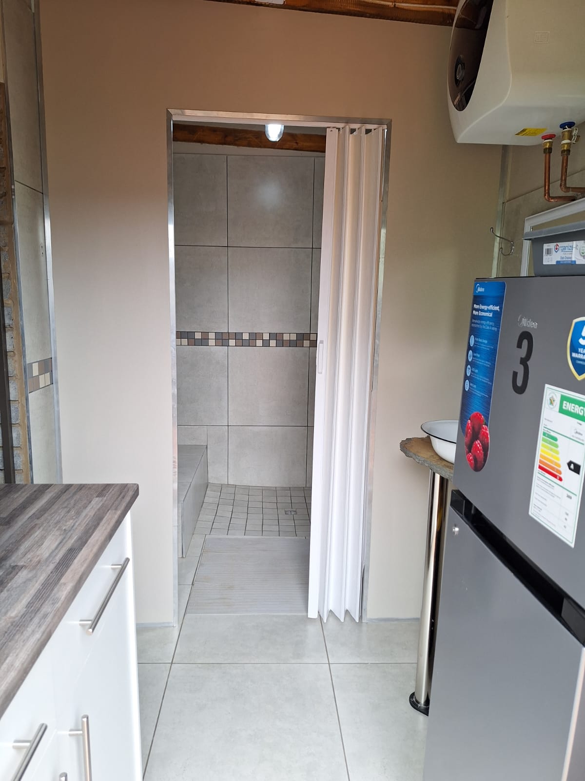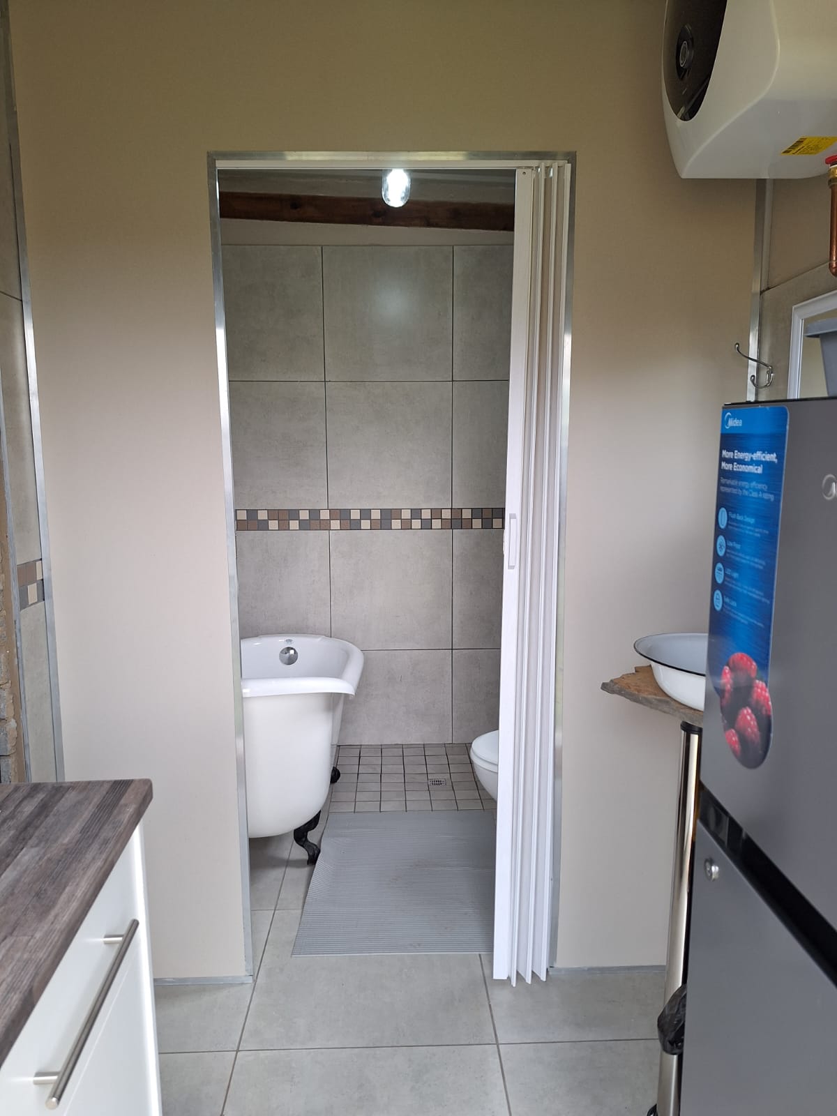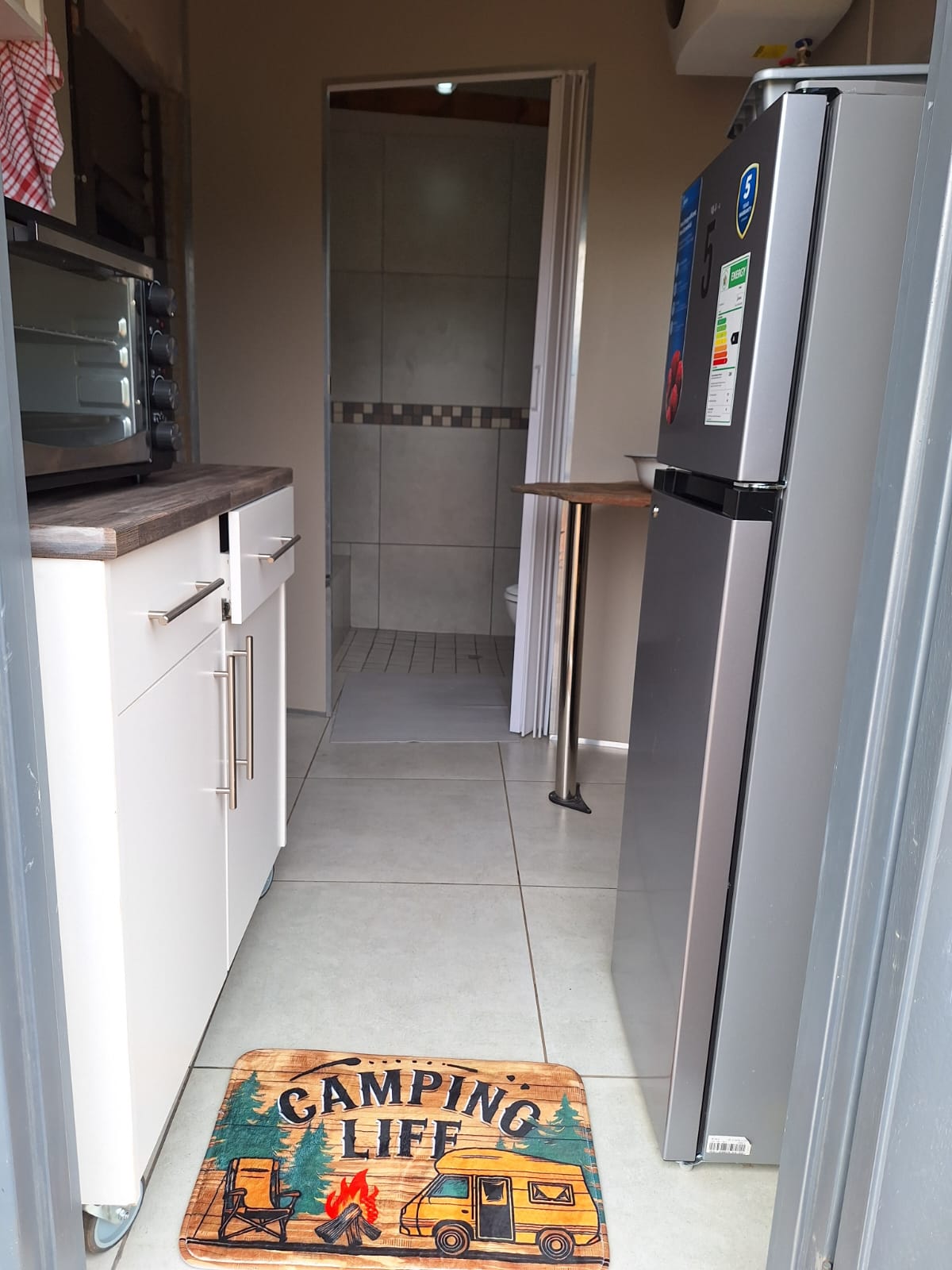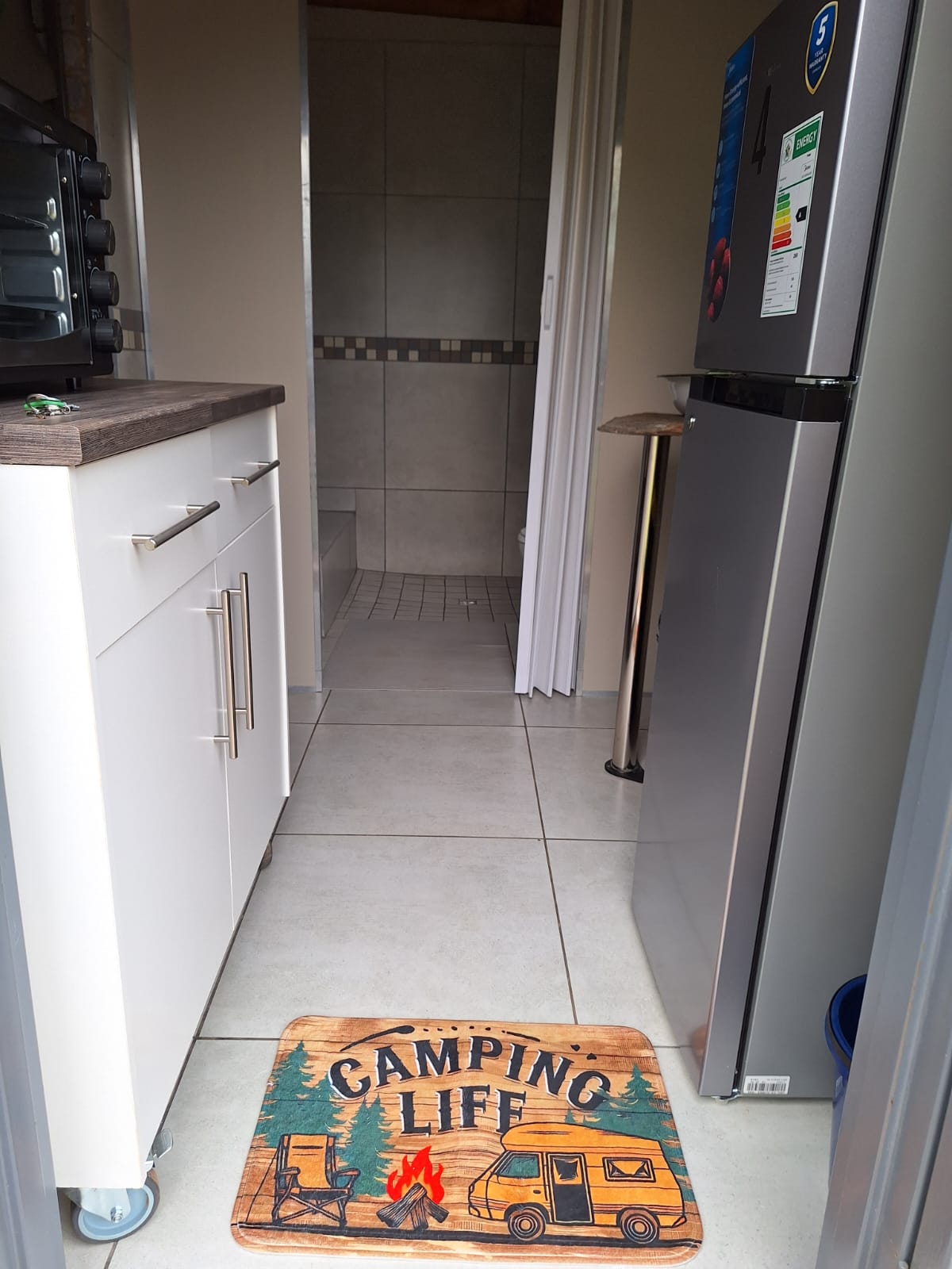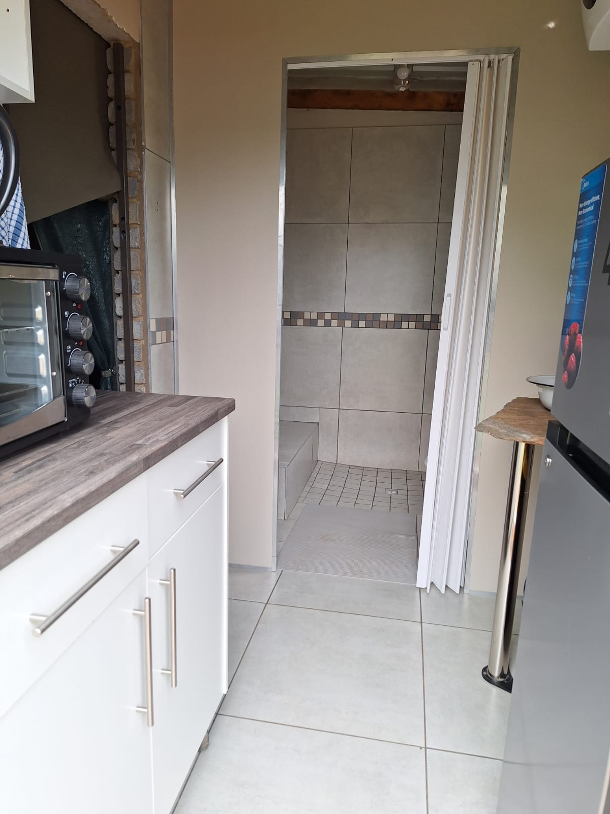 A private en-suite bathroom and kitchen